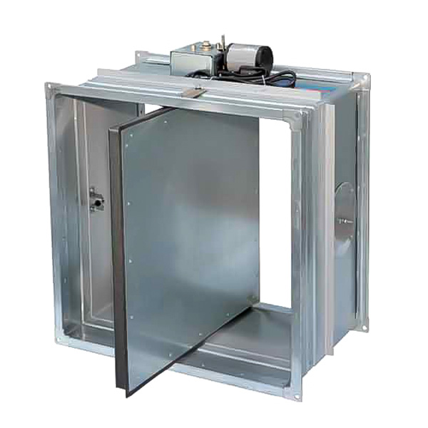В обычном (нормальном) состоянии заслонка клапана расположена в открытом положении. При этом привод находится под напряжением и сдерживает пружину. При пожаре напряжение с привода снимается, и пружина переводит заслонку в закрытое (защитное) положение. Возврат заслонки в исходное положение происходит возобновлением подачи напряжения или с помощью ручного механизма.